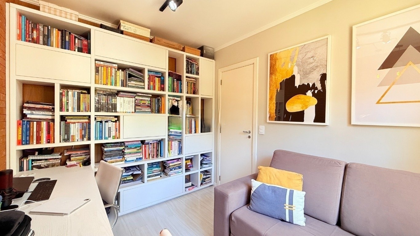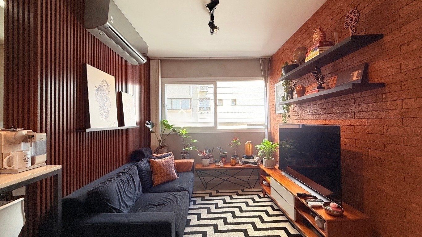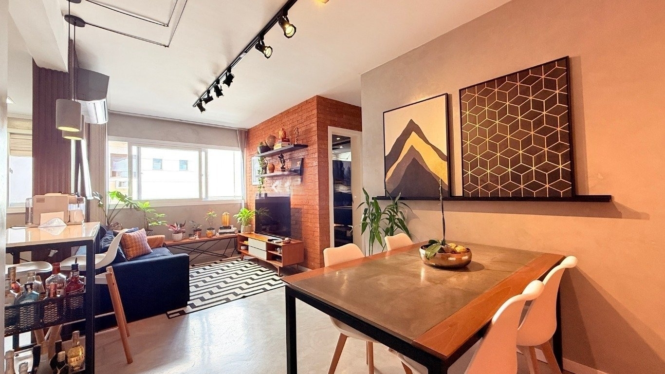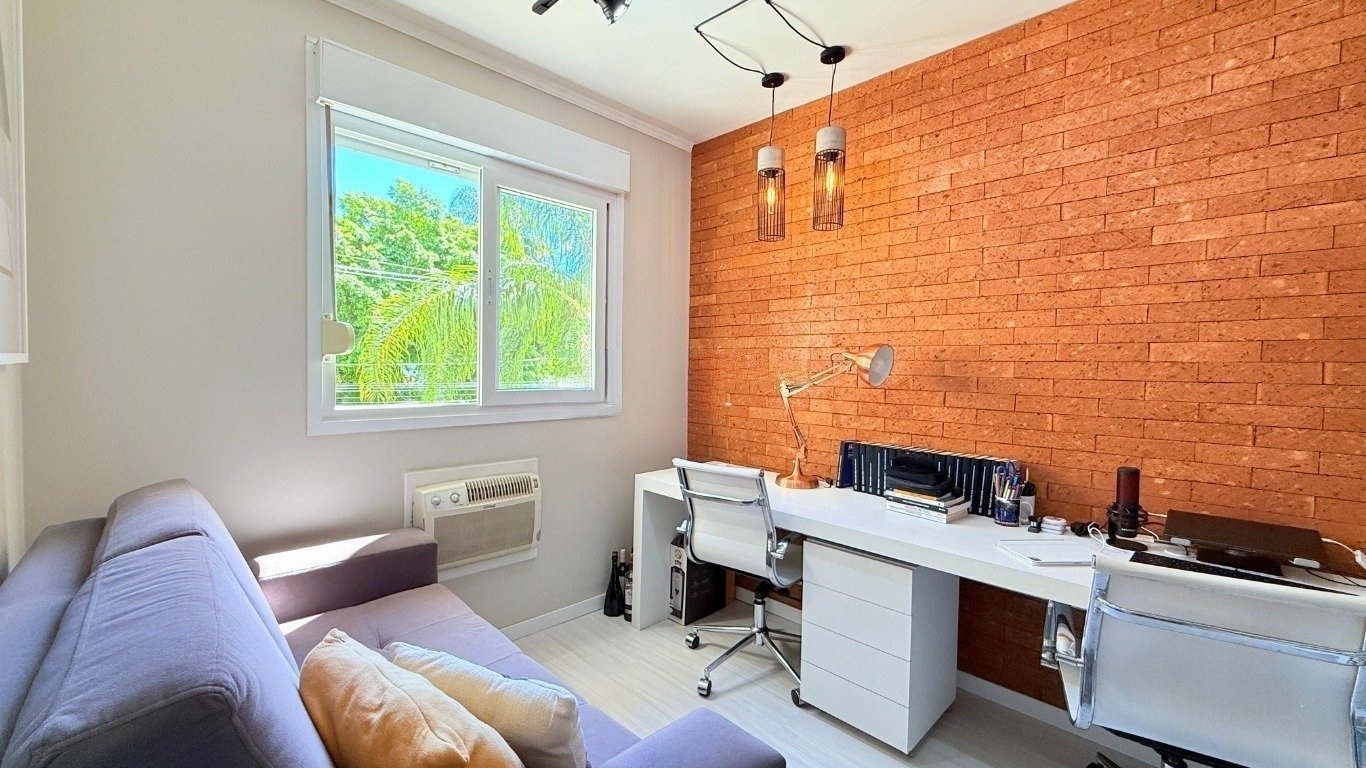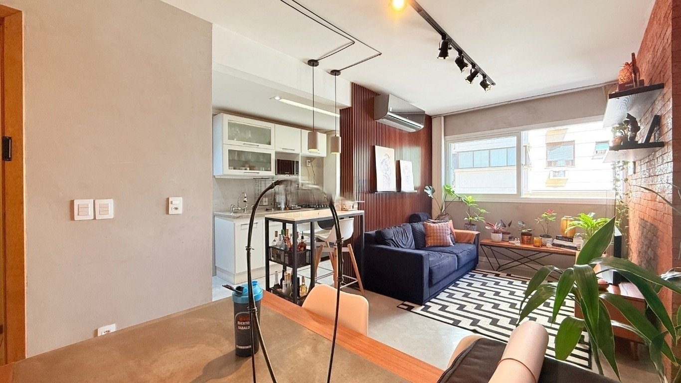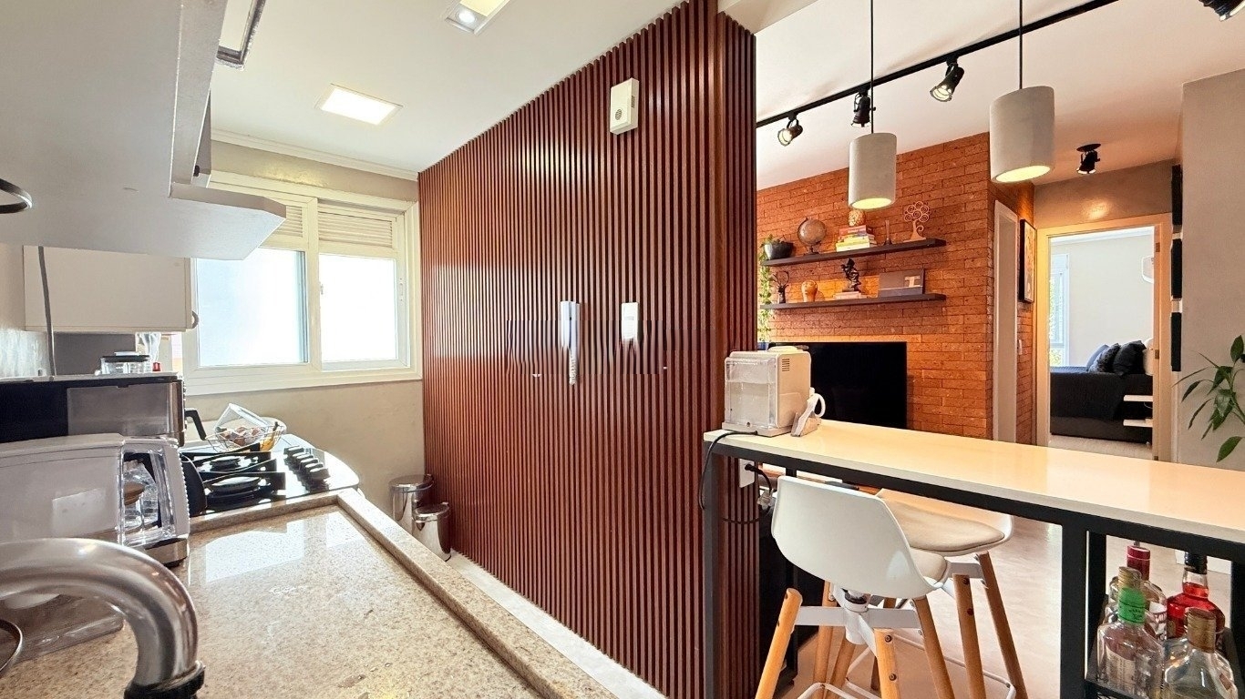 apartamento de 2d com garagem mobiliado Com 59m de área privativa, o imóvel oferece um living acolhedor e bem decorado, com sofá, split, rack com TV e mesa com cadeiras, criando um ambiente convidativo para relaxar e receber amigos. A cozinha planejada é completa, equipada com armários sob medida, fogão, geladeira e churrasqueira, ideal para quem valoriza praticidade no dia a dia. São dois dormitórios, sendo uma suíte com cama de casal, armário planejado e split, e o segundo dormitório que pode ser adaptado como escritório para home office ou utilizado conforme sua necessidade. O banheiro social conta com box de vidro e armário, garantindo conforto e funcionalidade. O condomínio oferece infraestrutura completa,