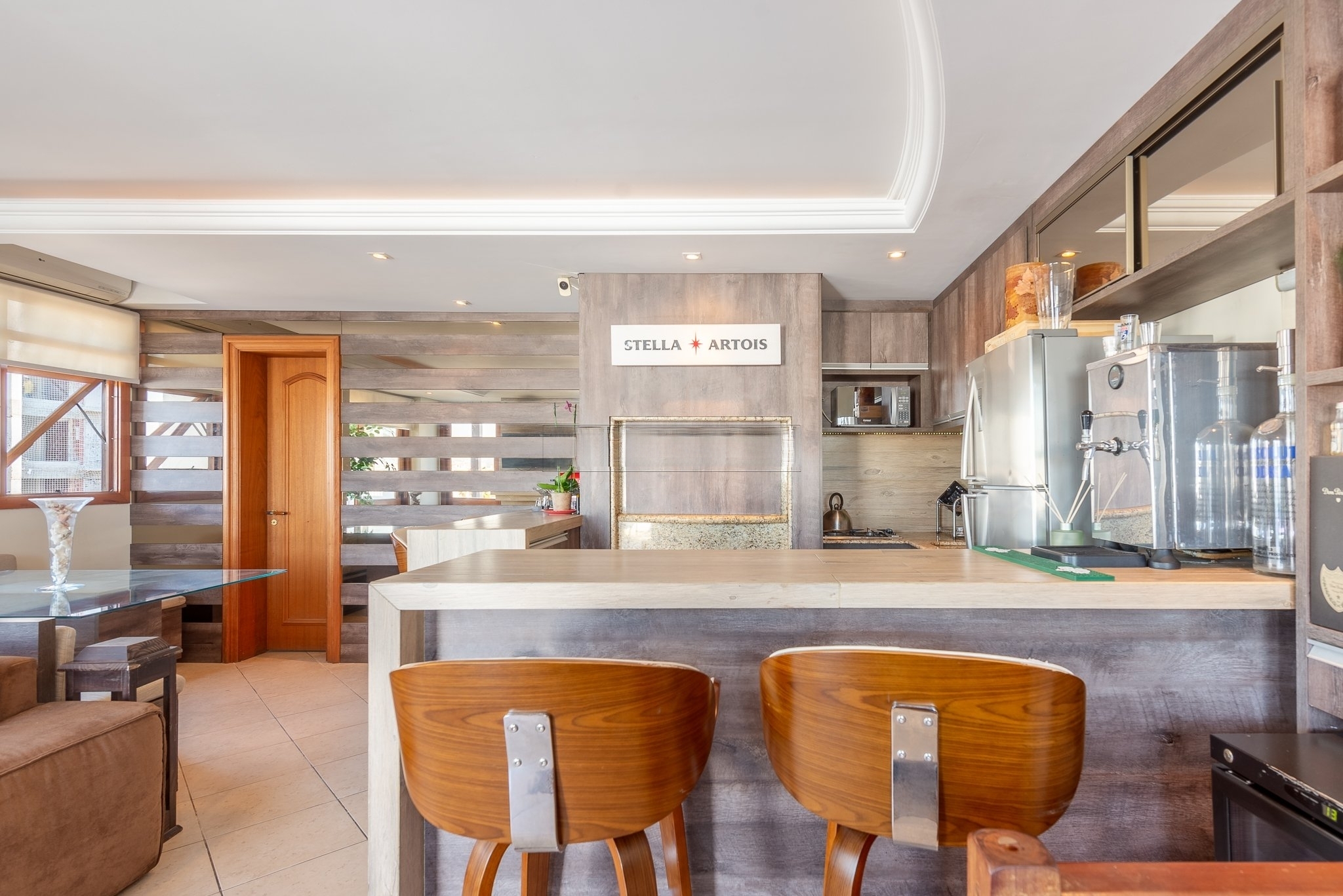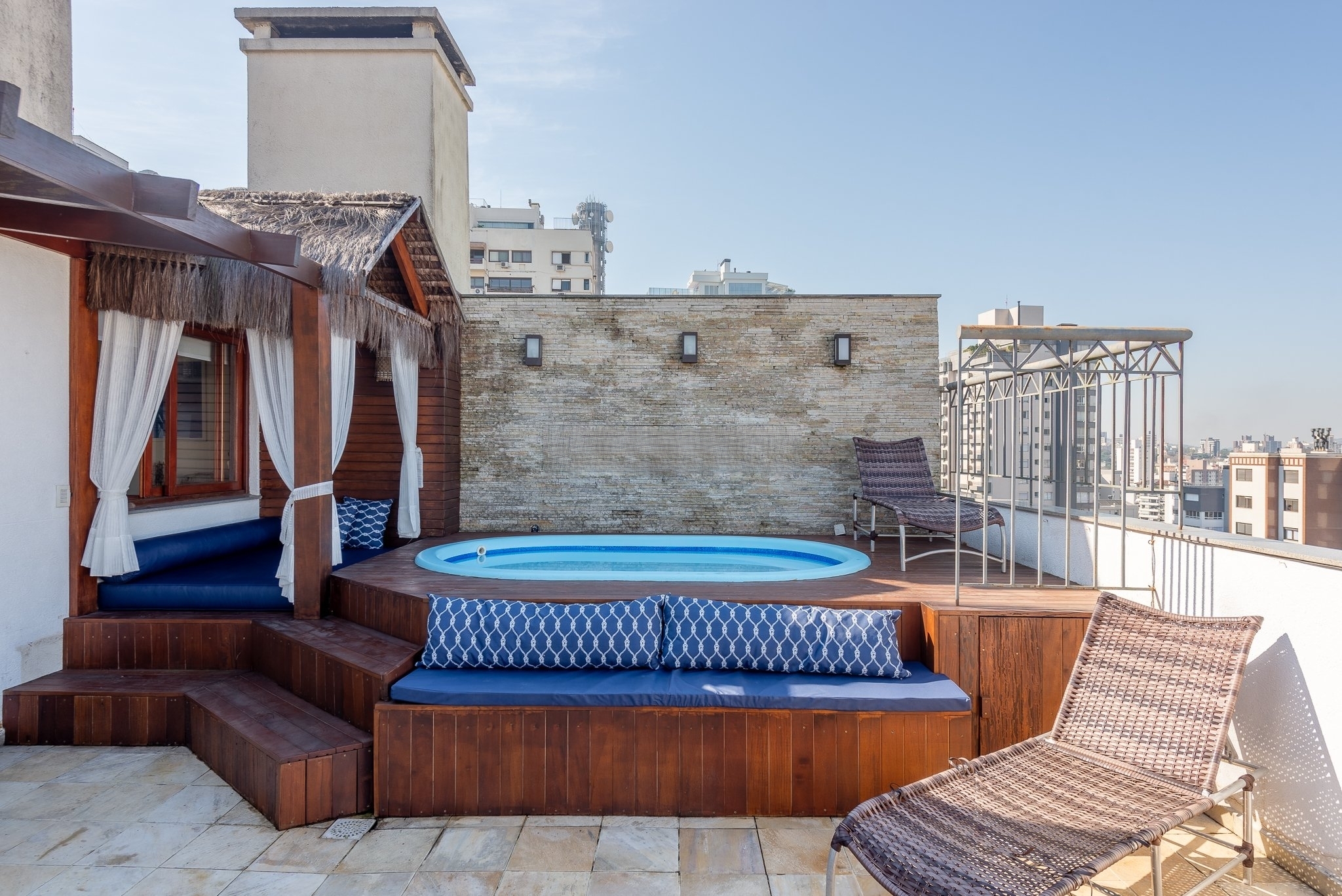 Aluga cobertura 3 dormitórios, 1 suíte, 4 banheiros 2 vagas de garagem Ótima cobertura no bairro Bela Vista, andar alto, com 207m² privativos, 3 dormitórios, sendo 1 suíte com closet, cozinha americana, e área de serviço separada e banheiro auxiliar. Água quente na cozinha e banheiros. Apartamento mobiliado com moveis de alta qualidade. No andar superior possui: ampla sala de estar com lareira e espaço gourmet com churrasqueira, banheiro social, amplo terraço com deck e piscina aquecida, com vista panorâmica perene, com muito sol. Possui 2 vagas escrituradas e cobertas (lado a lado). Edificio com portaria virtual 24 horas, 2 elevadores, gás central, amplo salão de festas, sala de jogos, zelador. Localizado no bairro mais cobiçado em Porto Alegre, possui ampla gastronomia e serviços, próximo da Praça da Encol, um tradicional ponto de lazer e entretenimento. Em ótima localização, próximo de ótimas cafeterias, restaurantes, praças e demais comodidades do bairro, Mercado Moacir e Zaffari da Cabral