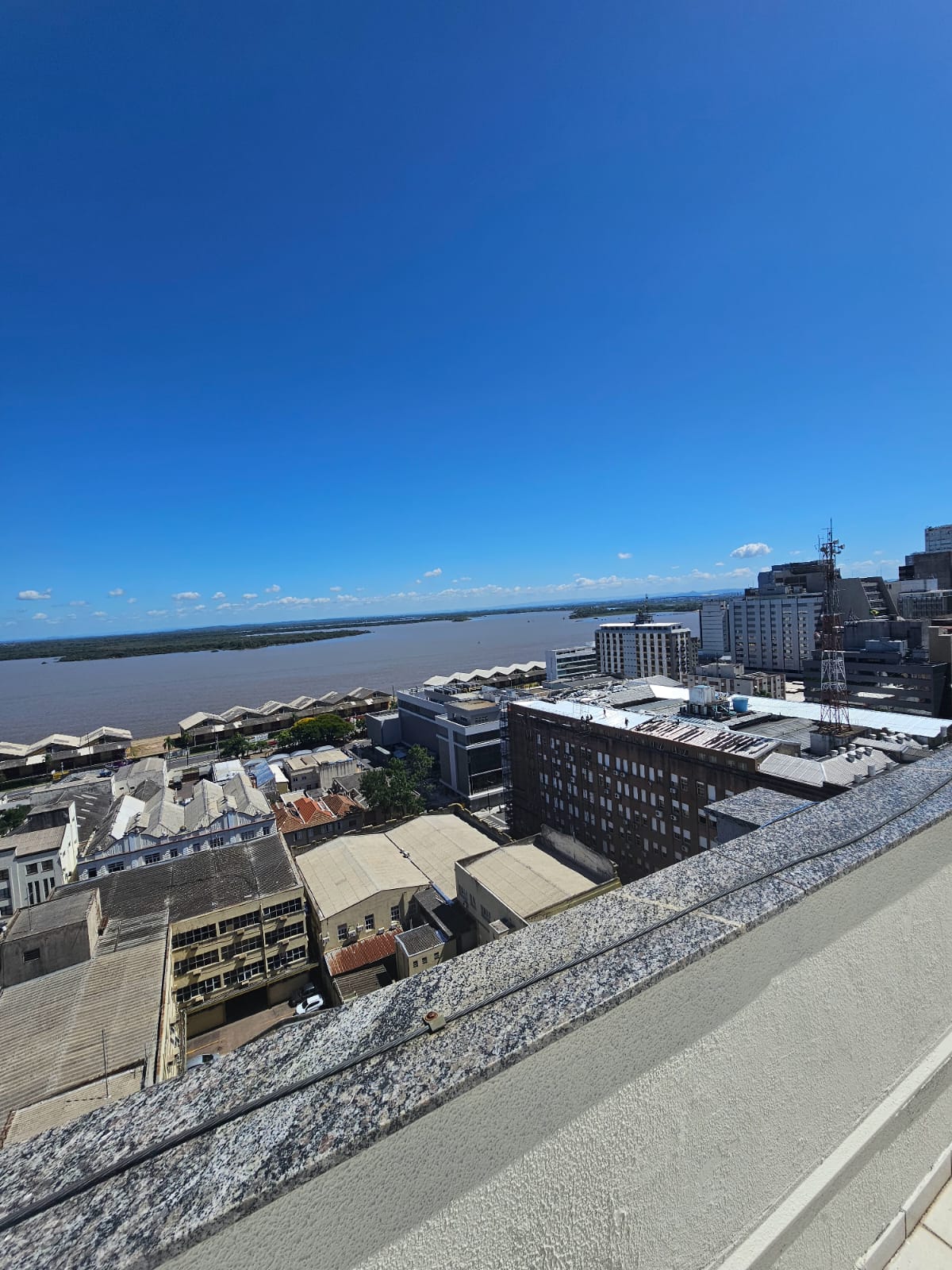 Aluga apartamento na Andradas Excelente apartamento, 1dorm, andar alto com vista para o Guaiba, piso ceramica, ar condicionado na sala e no dormitório, cozinha com armários, banheiro com box de vidro, prédio com portaria 24h, terraço com churrasqueira e vista panorâmica, lavanderia, bicicletário, elevadores, mercadinho interno. localização privilegiada em zona militar segurança total. a poucos minutos do Gazômetro, Cais embarcadero, Shopping Praia de Belas,